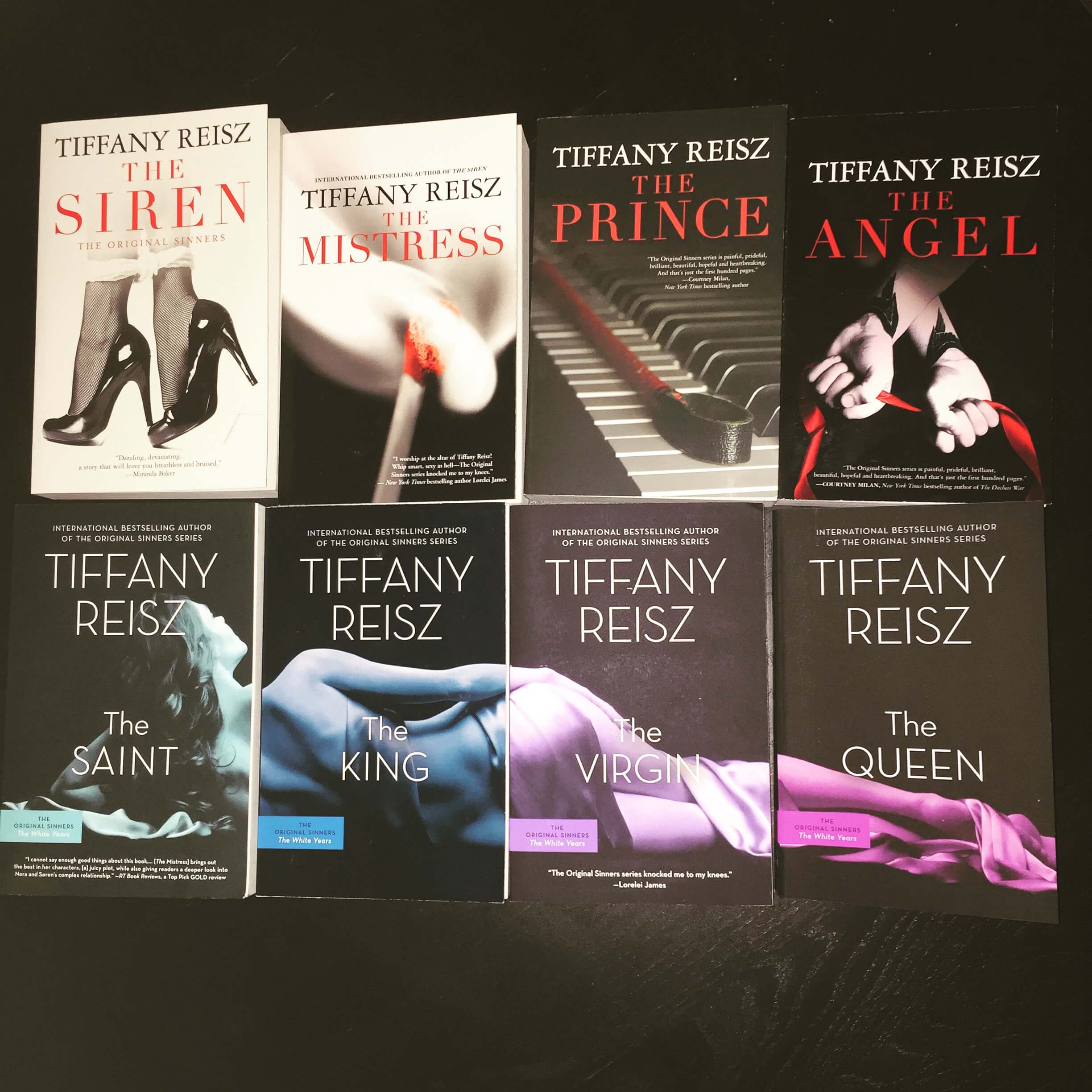 I received my signed books order from Tiffany Reisz this week, and I’m so excited to have her full Original Sinners collection in paperback, signed, and decorating my shelves! Aren’t the covers for The Saint, The King, The Virgin and The Queen very cleverly done? I absolutely love that they make out one single picture when put together like that.